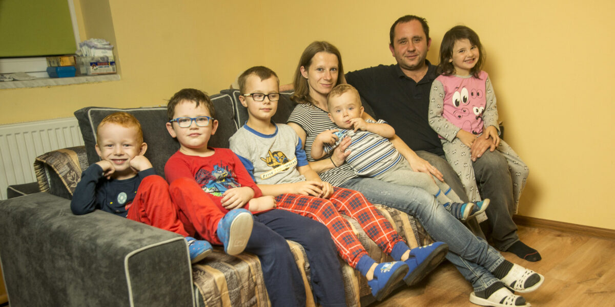 Po ślubie pani Małgorzata i pan Piotr zamieszkali w Gorlicach, rodzinnym mieście pana Piotra. Wynajmowane mieszkanie szybko okazało się dla nich za małe – w 2015 roku rodzina powiększyła się bowiem o piąte dziecko. Pani Małgorzata i pan Piotr zdecydowali wtedy, że przeprowadzą się do Piekar Śląskich i spróbują wyremontować dom, który pani Małgorzata odziedziczyła po dziadkach. Ponieważ dom był w tak złym stanie, że nie nadawał się do zamieszkania, rodzina wprowadziła się do mieszkania, które znajduje się w tym samym mieście, a w którym mieszka mama pani Małgorzaty. Pan Piotr zaczął remontować dom za pieniądze zaoszczędzone na najmie, ale szybko okazało się, że oszczędności nie są wystarczające, by móc doprowadzić budynek do godziwego standardu. Latem 2016 roku zwrócił się więc do Fundacji Habitat for Humanity Poland z prośbą o wsparcie w pracach remontowych.